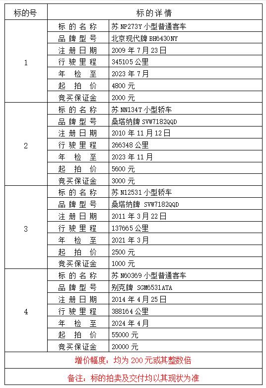 1.本次拍賣標的不含原車牌照。標的拍賣及交付時均以標的實物現(xiàn)狀為準,競買人應在標的物展示時間內(nèi)主動向委托方咨詢標的相關(guān)情況,現(xiàn)場踏勘、了解標的現(xiàn)狀,未進行標的勘察的競買人后果自負。