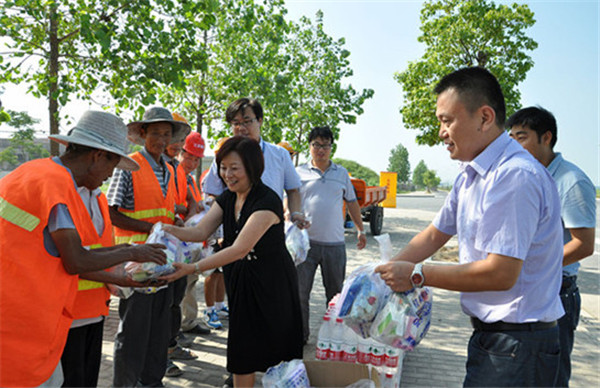 炎炎夏日,酷暑當(dāng)頭,持續(xù)高溫天氣給室外作業(yè)人員帶來(lái)了嚴(yán)峻考驗(yàn)。8月2日上午,園區(qū)黨工委委員、管委會(huì)副主任、開(kāi)發(fā)公司總裁丁琦帶隊(duì)慰問(wèn)了高溫下堅(jiān)守在一線(xiàn)的環(huán)衛(wèi)、物業(yè)保安、施工人員等,為他們送去了礦泉水、毛巾等防暑降溫用品。