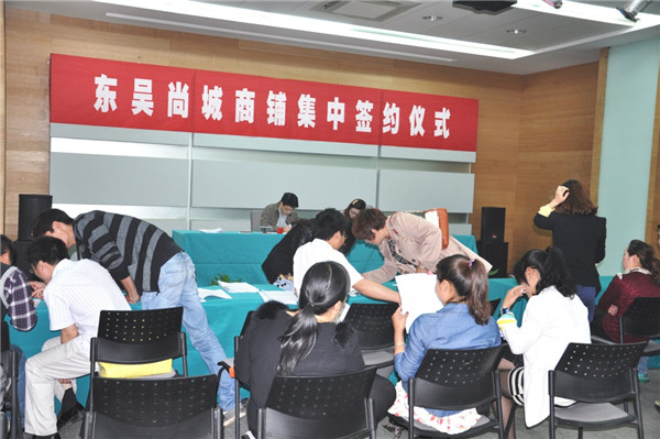 5月9日上午,由開(kāi)發(fā)公司投資建設(shè)的園區(qū)公舍配套商業(yè)樓—東吳尚城商鋪集中簽約活動(dòng)在管委會(huì)一樓會(huì)議室火熱舉行,眾多客戶熱情高漲,率先簽約,現(xiàn)場(chǎng)氛圍緊張急切。