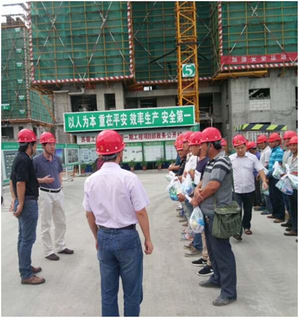 周原現(xiàn)場向施工人員發(fā)放了慰問品,并要求施工單位認(rèn)真做好防暑降溫工作,合理安排作息時(shí)間,確?,F(xiàn)場安全文明施工。