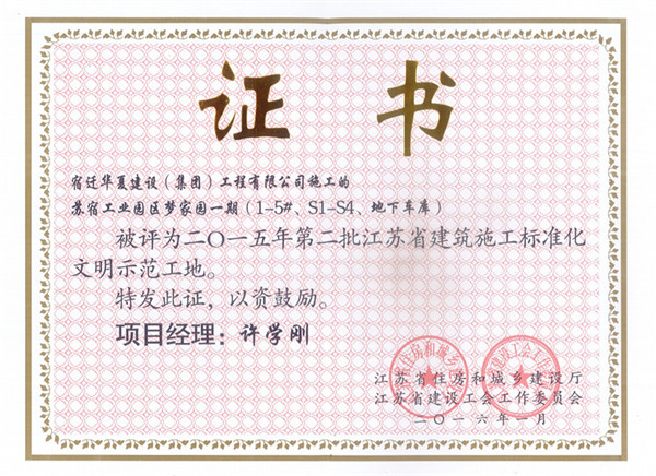 近日,夢(mèng)家園?融園一期工程獲評(píng)“2015年第二批江蘇省建筑施工標(biāo)準(zhǔn)化文明示范工地”稱號(hào)。
