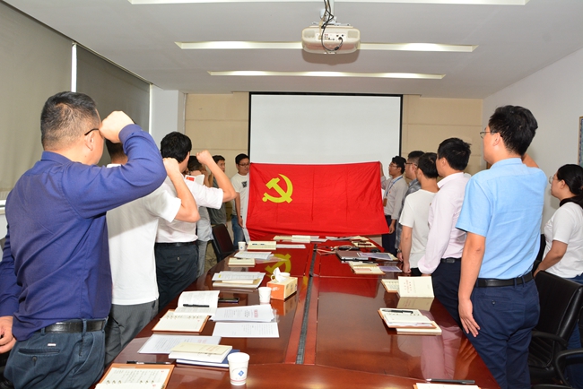 緊接著,開展“四重”活動。活動前公司行政人事部專門從園區(qū)檔案室調(diào)取每一名黨員入黨志愿書,將內(nèi)容拍好發(fā)到每人,重溫入黨時的難忘經(jīng)歷。在劉建華書記的帶領下,右拳高擎,神情莊重,面對鮮紅的黨旗鄭重宣誓,抒發(fā)對黨的忠誠,踐行黨的宗旨,維護黨的形象和愛黨愛國情懷。