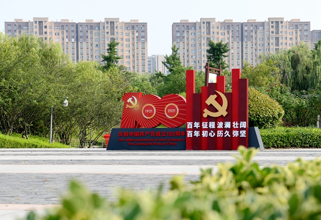 在園區(qū)的廣場、公園、學校等處,“建黨一百周年”、“核心價值觀”、“中國夢”、“不忘初心”等主題雕塑隨處可見;園區(qū)主要道路節(jié)點鮮花綻放;青海湖西路燈桿懸掛國旗,公交站臺櫥窗張貼節(jié)日宣傳畫面,道路被鮮艷的紅色浸染,讓園區(qū)洋溢著喜慶、熱烈的節(jié)日氣氛。