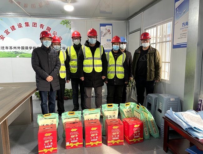 檢查后,在宿蘇外南北校區(qū)擴(kuò)建項目施工現(xiàn)場,房建工程部向堅守在一線的工人送去了食用油和大米,叮囑大家注意春節(jié)期間安全和疫情防控并表達(dá)了新春祝福,祝愿大家過一個平安祥和的春節(jié)。