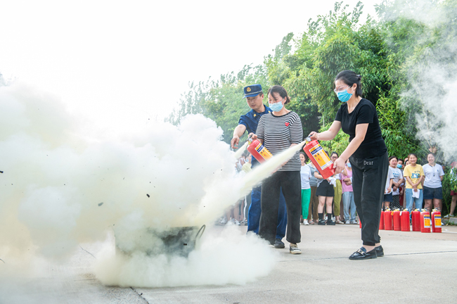 最后大家手持干粉滅火器對(duì)準(zhǔn)火源根部由遠(yuǎn)及近進(jìn)行掃射撲滅火源的實(shí)際操作,熟練掌握了滅火器的使用方法,提高了員工撲救初期火災(zāi)的能力。