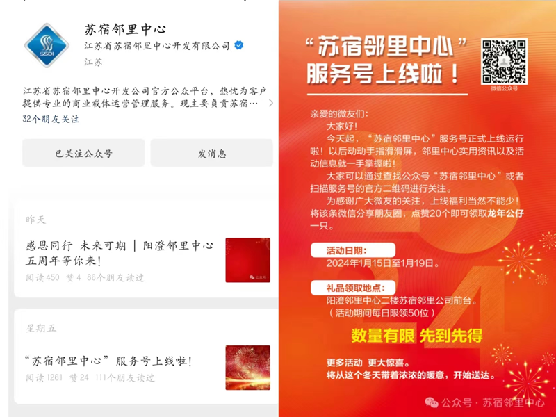 為提高商業(yè)服務效率和居民便利化感受,注重于社區(qū)居民情感培養(yǎng),構建良好的社群關系,近期,“蘇宿鄰里中心”公眾號正式上線。