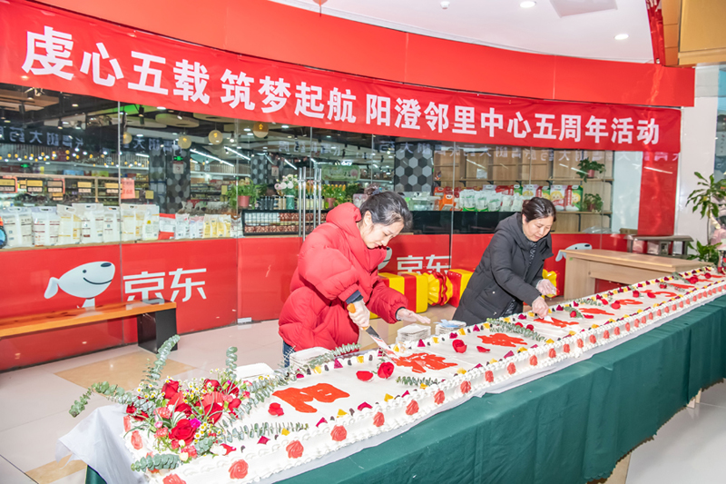 為感恩廣大新老客戶(hù)和商戶(hù),1月18日,公司開(kāi)展陽(yáng)澄鄰里中心五周年巨型蛋糕免費(fèi)品嘗活動(dòng),不到2小時(shí),6米巨型蛋糕就被分享完畢,領(lǐng)到蛋糕的家人和顧客朋友們都洋溢著滿(mǎn)滿(mǎn)的開(kāi)心和幸福。