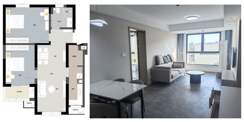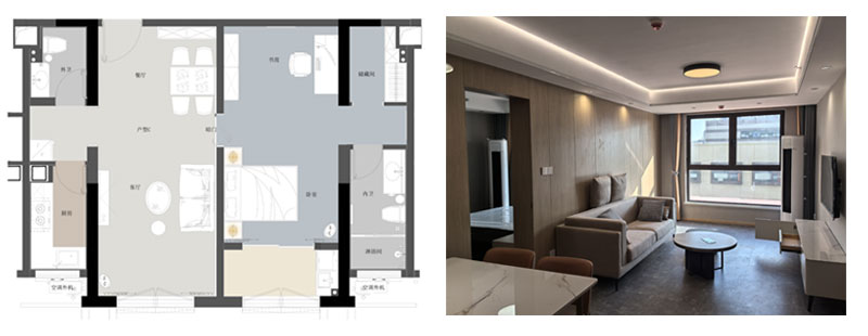 青年公寓一期3#白領(lǐng)公寓共三種戶型,A戶(2室1廳1廚1衛(wèi)面積84m2)44間、B戶(1室1廳1廚1衛(wèi),面積35m2)88間、C戶(1室1廳1廚2衛(wèi),面積72m2)44間,共計(jì)154間,裝修面積約1.3萬平方米。白領(lǐng)公寓旨在服務(wù)于入駐企業(yè)高精尖人才,是園區(qū)迄今為止已建成的單體建筑規(guī)模最大、配套設(shè)施最為完善的白領(lǐng)公寓,內(nèi)設(shè)廚灶、抽油煙機(jī)、櫥柜、床、書桌、衣柜、空調(diào)、冰箱及電視等基本生活設(shè)施,為入住人群提供拎包即住的便利。
