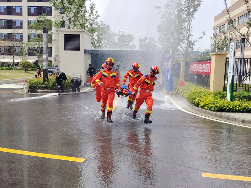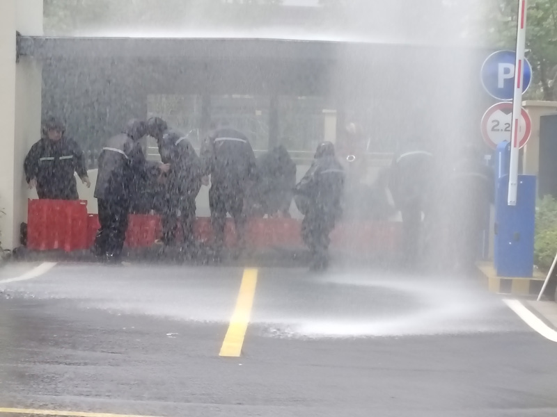 演練模擬受極端暴雨天氣影響,園區(qū)青年公寓出現(xiàn)嚴(yán)重積水、地下車庫被淹、樹木倒伏等復(fù)雜且具有挑戰(zhàn)性的防汛場景。公司防汛指揮部在接到險情報告后,迅速反應(yīng),第一時間啟動應(yīng)急預(yù)案。在總指揮的現(xiàn)場指揮調(diào)度下,應(yīng)急搶險隊伍迅速到達積水現(xiàn)場,隊員們熟練地安裝移動排水裝置,將路面積水強排至附近排水管道,快速緩解了路面積水狀況。對于地下車庫積水問題,同時對車庫內(nèi)的車輛進行有序疏散和安置,最大程度減少了可能的財產(chǎn)損失。演練過程緊張有序,各環(huán)節(jié)銜接緊密,各部門之間協(xié)同配合默契,充分展示城發(fā)公司應(yīng)對防汛突發(fā)事件的能力,實現(xiàn)了從預(yù)案到實操的無縫銜接。