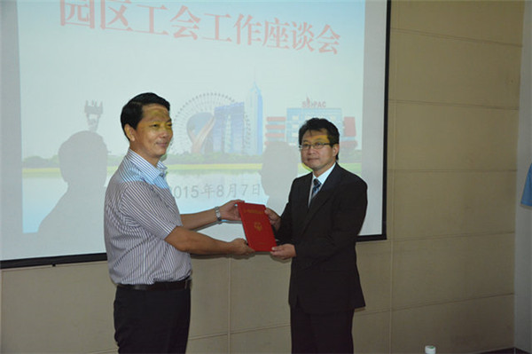 會議通報(bào)了上半年園區(qū)工會工作目標(biāo)完成情況,對獲得2015年度“江蘇省工人先鋒號”、“江蘇省五一勞動榮譽(yù)獎?wù)隆焙蜆s獲2014年度全市“安康杯”競賽先進(jìn)集體和個(gè)人進(jìn)行了頒獎。