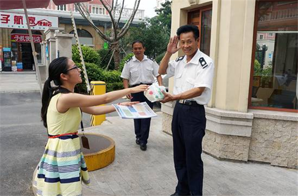 8月27日,社區(qū)為了對奉獻(xiàn)在基層一線的保安、保潔表達(dá)關(guān)心與敬意,特地準(zhǔn)備了防暑降溫物品,對高溫執(zhí)勤、勞作的在崗人員進(jìn)行了慰問,并叮囑大家注意休息、做好防暑降溫。