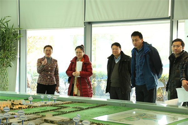 調(diào)研組先參觀了管委會一樓沙盤,駱敏詳細介紹了園區(qū)的建設(shè)背景、發(fā)展情況。