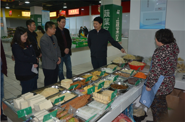 戈亮一行現(xiàn)場(chǎng)聽(tīng)取了菜場(chǎng)負(fù)責(zé)人開(kāi)業(yè)準(zhǔn)備工作情況匯報(bào),實(shí)地察看了生鮮菜場(chǎng)規(guī)劃布局、開(kāi)業(yè)方案、食品安全臺(tái)賬、食品安全檢測(cè)室設(shè)備,與各經(jīng)營(yíng)戶親切交談。