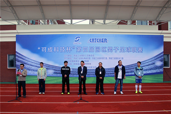10月16日,“可成科技杯”園區(qū)第四屆男子足球聯(lián)賽在宿遷市蘇州外國(guó)語(yǔ)學(xué)校田徑場(chǎng)精彩開(kāi)幕,園區(qū)黨工委委員、管委會(huì)副主任戈亮出席開(kāi)幕式并致辭。